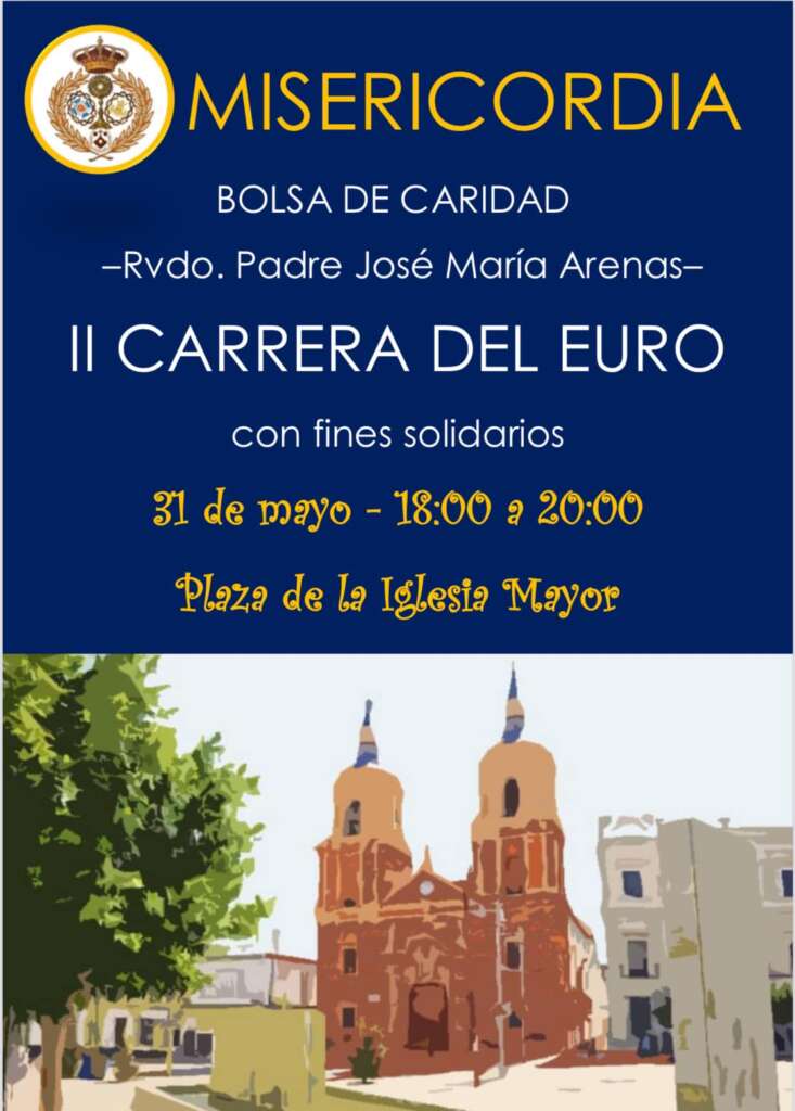 El próximo viernes 31 de mayo desde las seis hasta las ocho de la tarde miembros la Bolsa de Caridad 'Rvdo. Padre José María Arenas' de la Hermandad Sacramental de la Misericordia de San Fernando se darán cita de nuevo en la Plaza de la Iglesia Mayor de San Fernando para llevar a acabo la segunda edición de la 'Carrera del euro' con carácter solidario, cuyos donativos serán destinados a la Caritas Parroquial y a la compra de necesidades del Comedor Social 'El Pan Nuestro'.