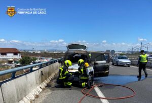 Una vez más el Consorcio de Bomberos de Cádiz acudió a sofocar un incendio en una de las carreteras de la provincia, en este caso un efectivo del Parque de Tres Caminos acudió este martes, 21 de mayo al medio día, a apagar un incendio en un vehículo en la CA-33 utilizando dos autobombas.