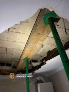 Los bomberos se trasladaron al lugar, tras ser avisados a las 20:00 horas, que tras ver el desprendimiento llamaron al técnico perito del Ayuntamiento de San Fernando. El efectivo de bomberos procedieron apuntalar la vigueta dañada y sanear dicho techo.