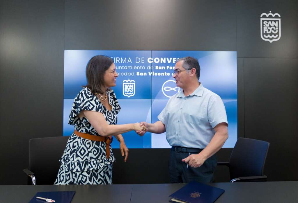 La alcaldesa, Patricia Cavada, ha renovado este martes el apoyo del Ayuntamiento al trabajo de intervención social con las personas en situación de calle que desarrolla en el albergue de personas sin hogar de San Fernando la Sociedad San Vicente de Paúl. Para ello, ha firmado con el presidente del Consejo de Zona de Cádiz de dicha sociedad, Francisco Holgado, el convenio regulador de 2024 por el que, tras la aprobación de los presupuestos, se concede una subvención nominativa por valor de 110.678 euros a la Casa Albergue Federico Ozanam. A esta cantidad hay que sumar la subvención de capital de 28.000 euros para financiar la reforma acometida para la mejora de dichas instalaciones.