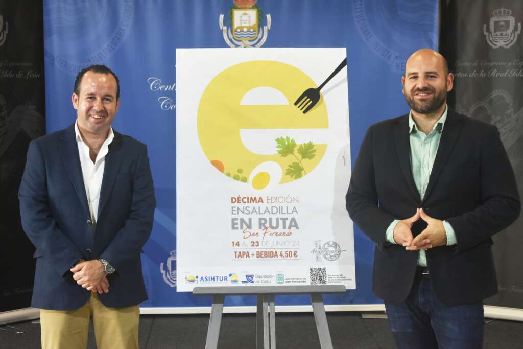 El delegado municipal de Comercio, Hostelería, Consumo y Mercados, Miguel Ángel Fernández; y el vicepresidente de la Asociación Isleña de Hostelería y Turismo (Asihtur), Antonio Alba, han presentado hoy en el Centro de Congresos y Exposiciones Cortes de la Real Isla de León una nueva edición de una de las rutas gastronómicas estrella de este colectivo: 'Ensaladilla en Ruta', que cuenta con la colaboración del Ayuntamiento de San Fernando y la Diputación Provincial de Cádiz. 'Ensaladilla en Ruta 2024' se desarrollará hasta el próximo 23 de junio y en ella participan dieciséis establecimientos asociados.