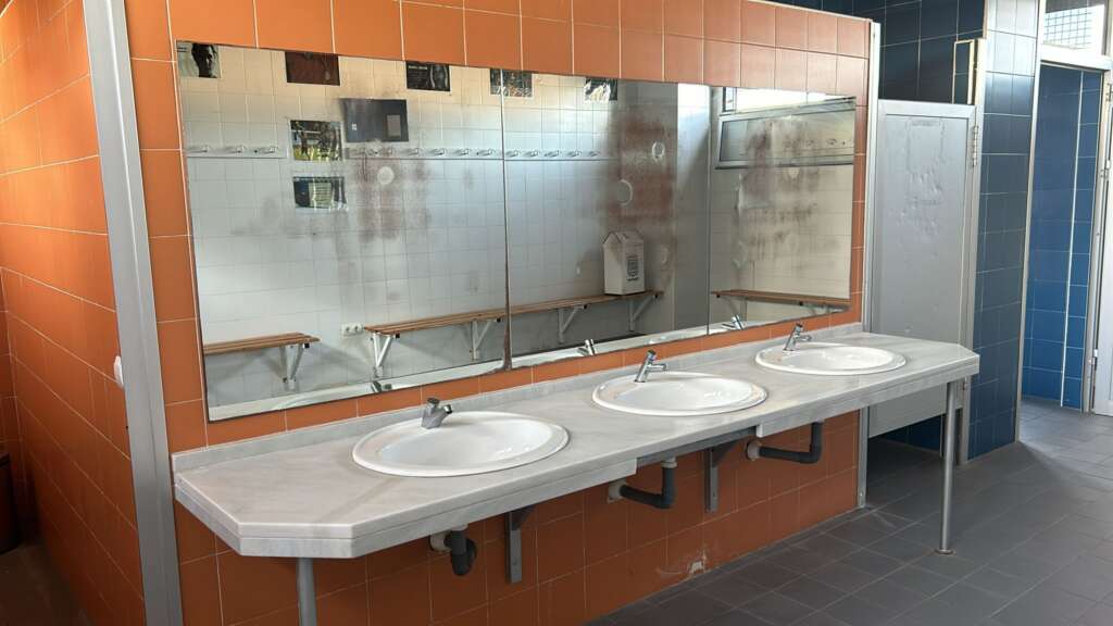 Espejos deteriorados en los vestuarios masculinos del Campo de Hockey Pablo Negre - El Castillo de San Fernando