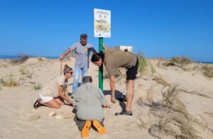 En la mañana de martes, 2 de julio, personal del Parque Natural Bahía de Cádiz y Técnicas de la Universidad de Cádiz asociadas al proyecto Iberalex, han estado trabajando en la playa de Camposoto de San Fernando.