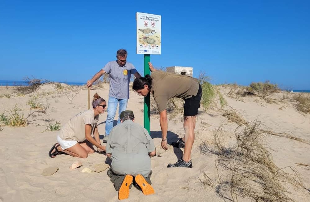 El motivo de asistir a esta playa y isleña ha sido para la colocación de carteles de aviso sobre zonas de nidificación y también explicativos sobre las amenazadas y medidas de conservación de las poblaciones de Chorlitejo patinegro desde la Playa de Camposoto hasta la Punta del Boquerón.