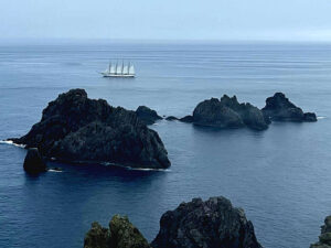 El Cabo Ortegal pertenece al municipio de Cariño, en la provincia de La Coruña donde el buque escuela ha recalado para proseguir el hasta el 21 de julio que llegue de nuevo a Cádiz tras dar comenzar esta nueva andadura el pasado 13 enero.