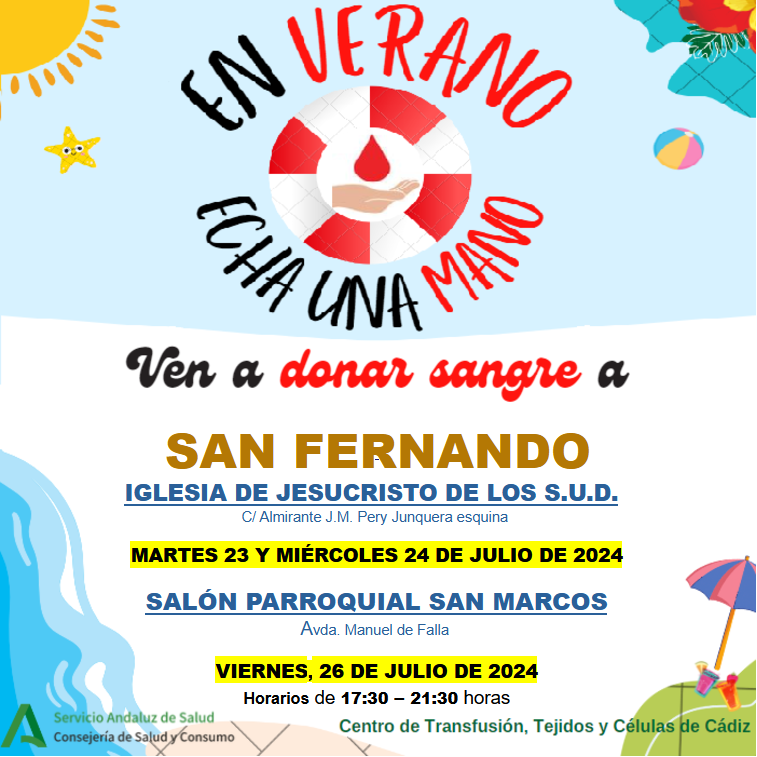 Una vez más desde CTTC de Cádiz piden a la población isleña que done sangre y plasma, por lo que convocan una nueva recolecta para este mes de noviembre en horario de tarde (de 17:30 a 21:30 horas).