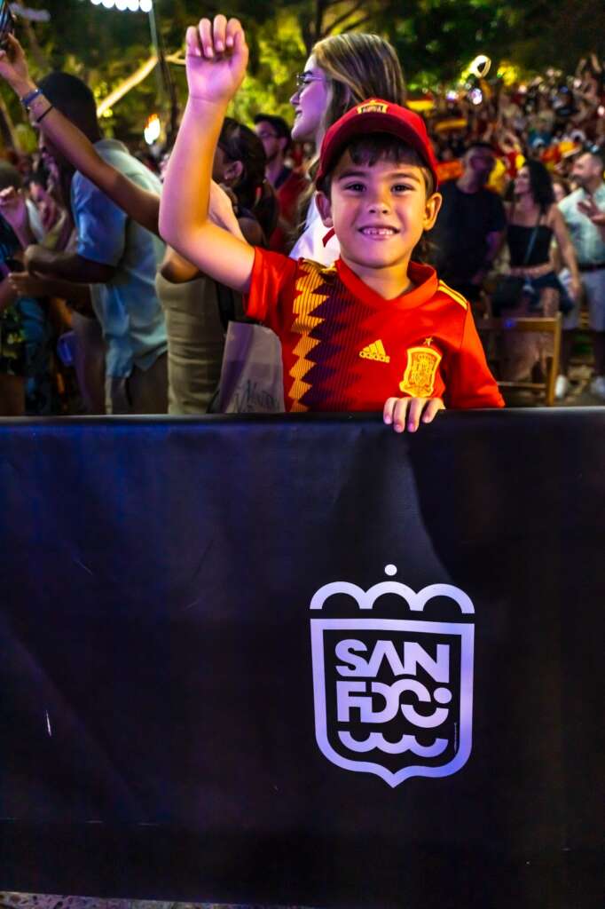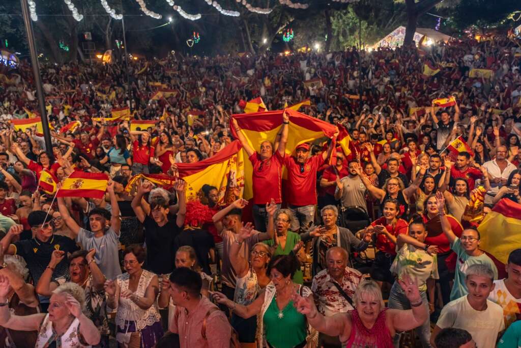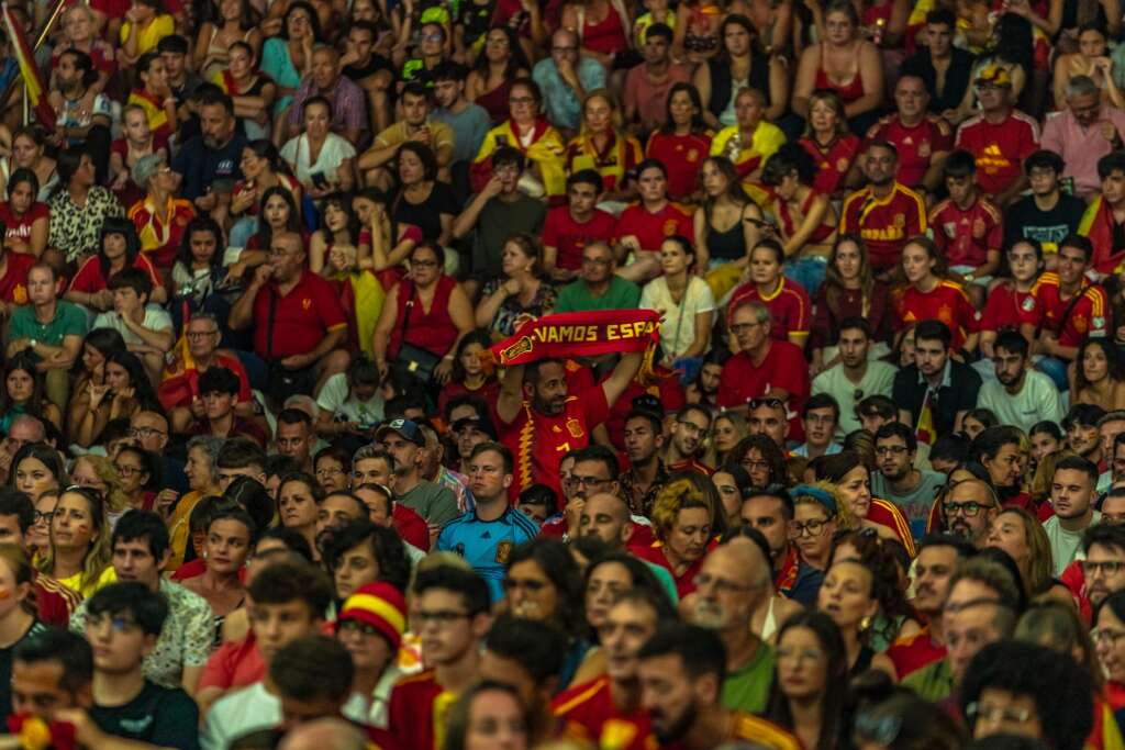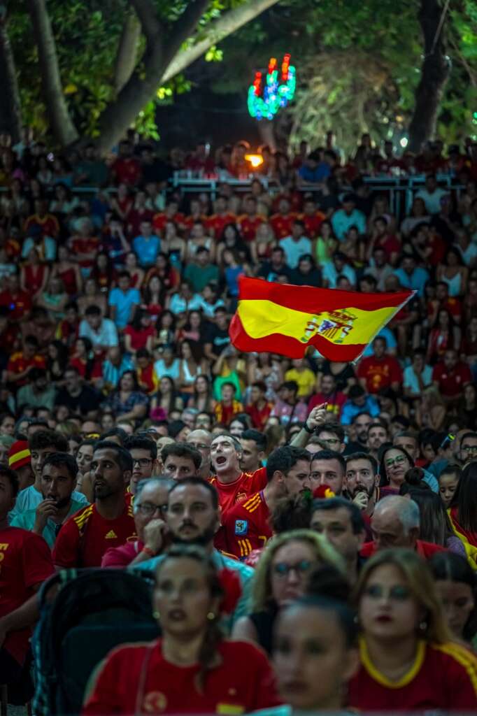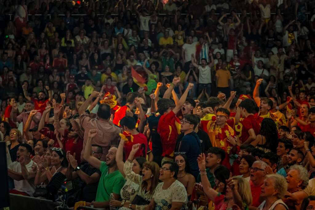 Un publico que vivió intensamente cada jugada, así como los dos goles y la entrega de los trofeos. Un publico que no cesaba de animar a la selección española con cánticos como; "yo soy español", "campeones", "somos campeones de Europa", "Gibraltar español", "que viva España", "somos los Reyes de Europa", "España campeón", entre otros.