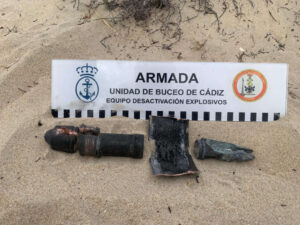 La Unidad de Buceo de Cádiz neutraliza un proyectil de 40mm en la playa de Camposoto