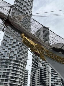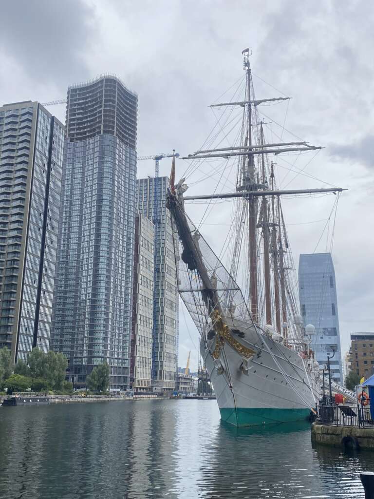 En las redes sociales de Reunido concretamente en la de X de Navantía UK, quisieron dejar constancia del buque escuela español en el muelle de Londres con unas impresionantes imágenes como las que se muestran, acompañados del siguiente texto, ya traducido: