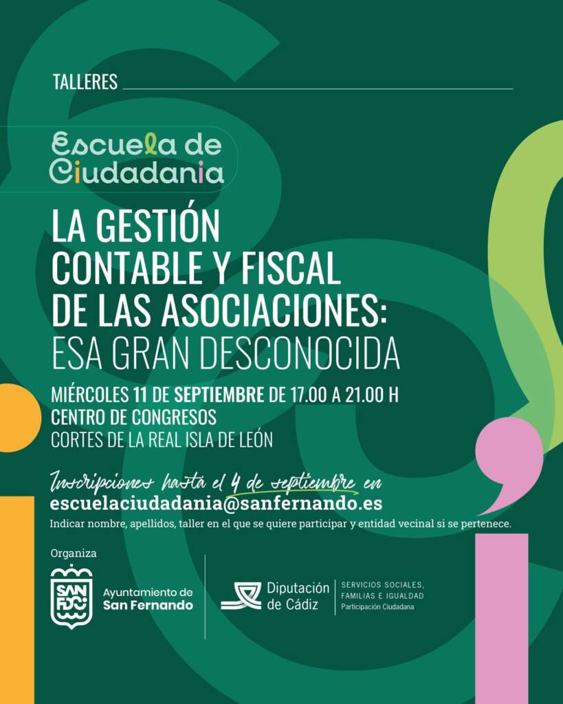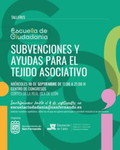 El Centro de Congresos Cortes de la Real Isla de León acogerá el próximo mes de septiembre dos talleres enmarcados en la Escuela de Ciudadanía puesto en marcha por la Diputación en colaboración con el Ayuntamiento de San Fernando con el objetivo de fortalecer el tejido asociativo mediante la formación sobre aspectos relacionados con la participación ciudadana y sobre la propia gestión de las asociaciones.