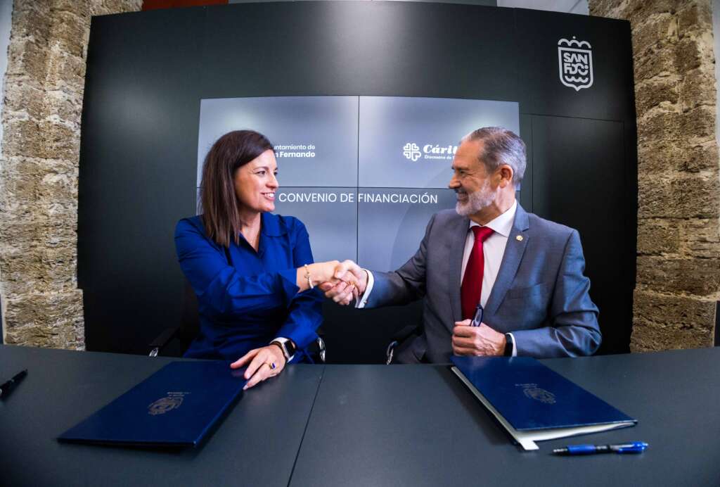El Ayuntamiento de San Fernando ha renovado su apoyo al trabajo de intervención social que viene desarrollando con Cáritas Diocesana de Cádiz en el municipio isleño. La alcaldesa, Patricia Cavada, y el director de la entidad social sin ánimo de lucro, Vicente Pablo Ortells, han rubricado hoy el convenio por el que esta entidad recibirá una subvención nominativa de 55.000 euros destinada a financiar el proyecto de Atención Social a Personas Sin Hogar de San Fernando 2024.