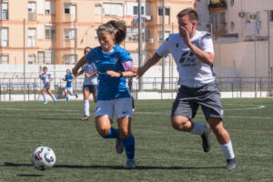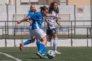 Las pupilas de José Carlos se adelantaban pronto en el marcador y fue Elena la que, en el minuto 7, tras un tiro desde el borde del área pequeña ponía el 1-0 en el marcador. Desde ese momento el equipo azulino fue dueño del partido y pudo haber ampliado la distancia en el marcador. Las visitantes contaron con alguna posibilidad de empatar tras el gol local, pero el buen sistema defensivo planteado por el míster con un magistral trabajo de Virginia Villegas y Andrea Moreno e intervenciones de la portera local Mar Cabrera hicieron que la victoria azulina fuera la que campeara en el marcador hasta el descanso (1-0).
