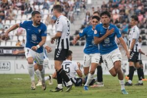 Y es que Rubén Enri le robó la cartera a la zaga albinegra en el 43’ en zona de tres cuartos. Sin embargo, su pase a un Airam que ya se relamía dentro del área lo cortó Sergio Chica in extremis. Acto seguido, Macías probó fortuna con un disparo centrado que detuvo Lázaro (44’) y Julio Iglesias no pudo conectar con certeza un balón suelto tras el despeje del portero balono en la que fue la última del primer tiempo.