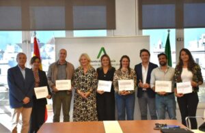 La delegada del Gobierno de la Junta de Andalucía en Cádiz, Mercedes Colombo, junto el delegado territorial de Empleo, Empresa y Trabajo Autónomo, Daniel Sánchez, ha entregado en la mañana de este miércoles 22 de octubre la resolución de las subvenciones destinadas a impulsar el asociacionismo comercial y artesano, dinamizar el pequeño comercio urbano y promover la artesanía en la provincia. Durante el encuentro han informado de que un total de seis asociaciones han sido beneficiadas por un importe total de 153.664,34 euros.