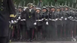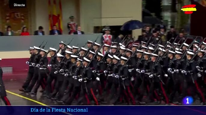 No hubo desfile aéreo pero sí un desfile terrestre, que a pesar de la lluvia prosiguió su curso tal y como estaba previsto con una magnífica representación de las Fuerzas Armadas del Estado.