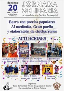 La Hermandad de la Divina Pastora y la Bolsa de Caridad Beato Diego José de Cádiz organizan una Jornada Solidaria a beneficio de Cáritas Parroquial.