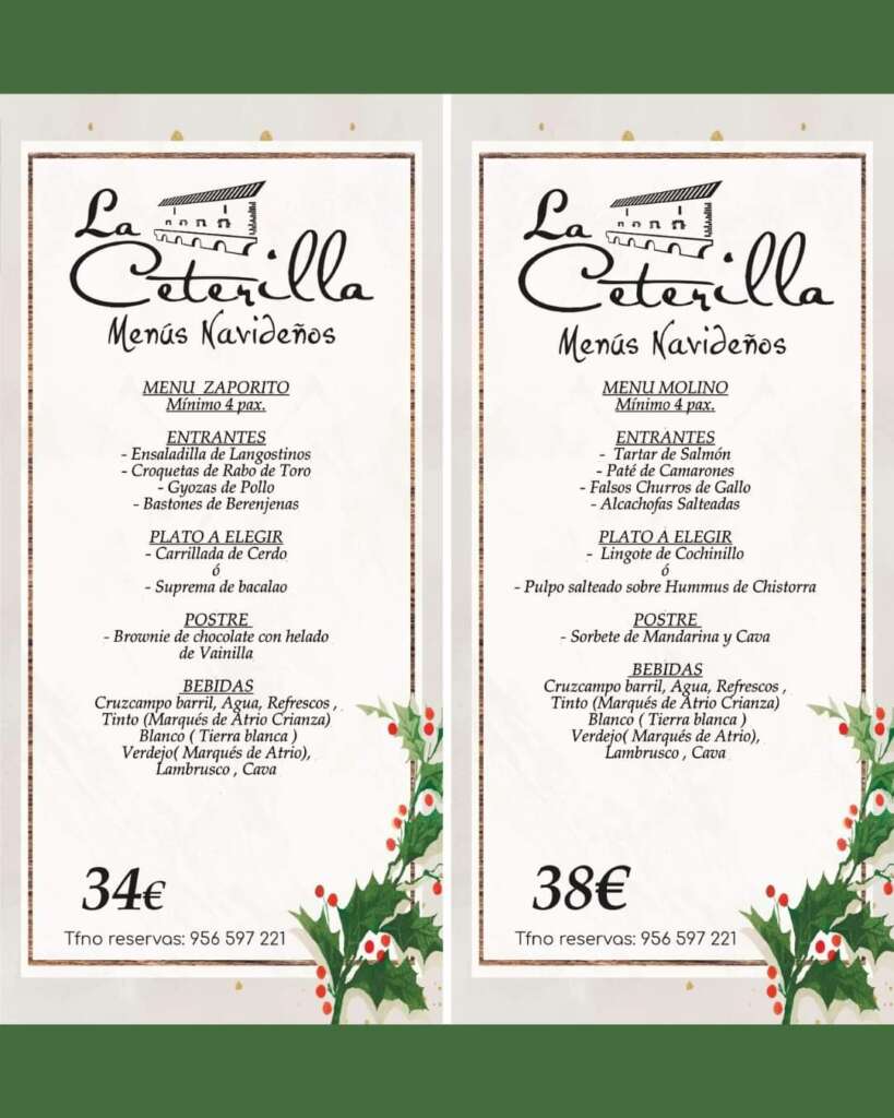 Ahora llegan unas fechas en las que los amigos, familiares, empresas... y diferentes reuniones "hacen por quedar, hacen por verse y reunirse" en determinados establecimientos para pasar un rato entrañable juntos, por lo que La Ceterilla del Zaporito presenta dos menús diferentes uno Zaporito y otro Molino para gusto de los comensales, cuyos platos muchos de ellos presentes en la nueva carta.