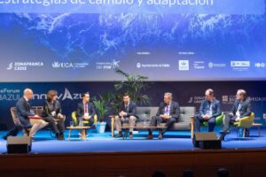 El concejal del Ayuntamiento de San Fernando, Conrado Rodríguez, ha participado en la mesa titulada ‘Territorio Azul: estrategias de cambio y adaptación’ junto a responsables de la Junta de Andalucía, de la Confederación de Empresarios de Cádiz, de la Autoridad Portuaria Bahía de Cádiz, la Autoridad Portuaria Bahía de Algeciras y del Plan Provincial de Adaptación al Cambio Climático de la Diputación Provincial de Cádiz.