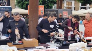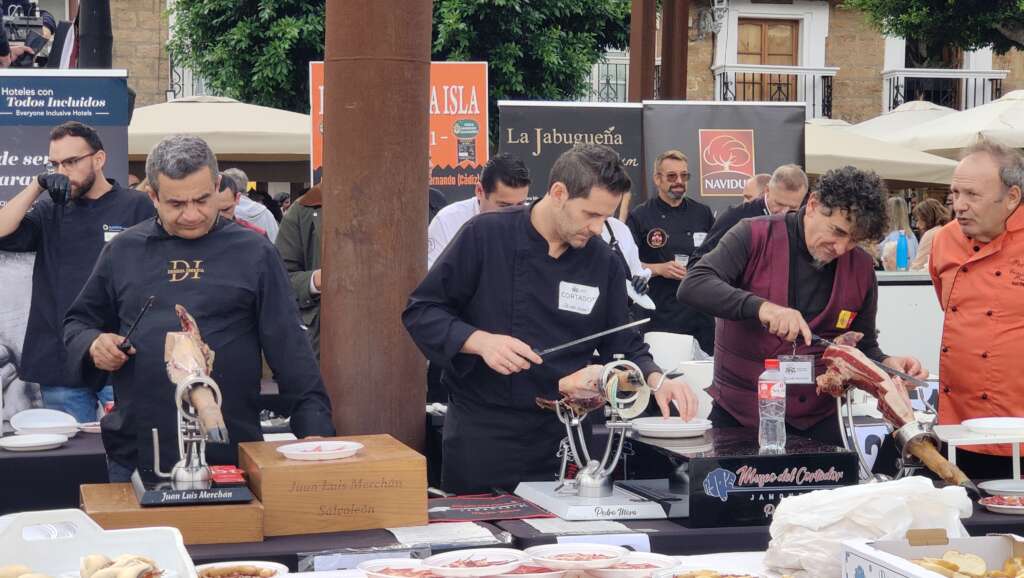 Destacar los cortadores de jamón, además de Florencio Sanchidrián, Pedro Mora de Chipiona y Juan Luis merchán de Badajoz (Salvaleón).