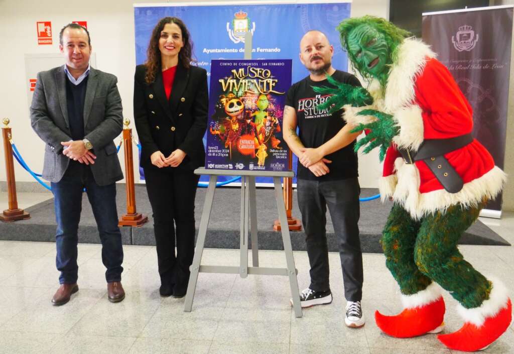 La concejala de Comercio, María Gómez; el vicepresidente de la Asociación Isleña de Hostelería y Turismo (Asihtur ), Antonio Alba, y el gerente de Horror Studio FX, Joaquín Lavilla, han presentado esta mañana en el Centro de Congresos Cortes de la Real Isla de León el Museo Viviente de la Navidad de Asihtur . Dicha iniciativa, que acogerá este espacio municipal el próximo lunes 23 de diciembre de 18.00 a 21.00 horas, está organizada por Asihtur y cuenta con la colaboración del Ayuntamiento de San Fernando y Horror Studio FX.