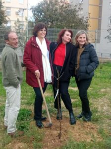Ana Jiménez, del departamento de matemáticas ha plantado un pino piñero; María Ángeles Serrano, la orientadora, un almendro; Malena Martínez, antigua directora y profesora de la asignatura de Lengua, un olivo; y Ramón Méndez, de Historia y que también fue director del instituto, un lentisco en el Jardín Arqueológico del Jorge Juan del que fue creador hace ya más de veinte años.