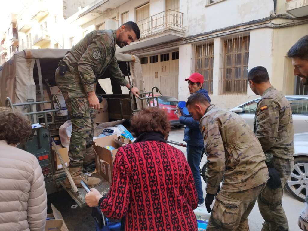 Continúan con las actividades de retirada de enseres, desescombro de locales, retirada de vehículos, limpieza de viales, extracción de lodos y material diverso en garajes y sótanos, así como la búsqueda de desaparecidos. Además, se realizan cometidos logísticos como gestión y organización de productos de primera necesidad, puntos de recogida y almacenes.