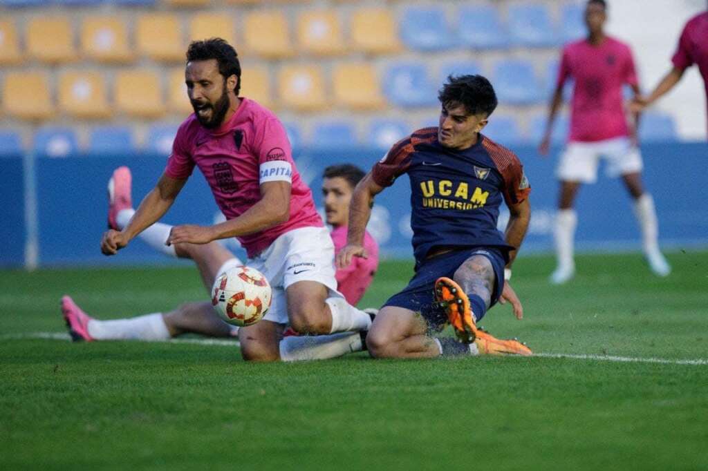 La respuesta del UCAM llegó poco después, con un cabezazo de Miki Bosch arriba a la salida de un córner. El conjunto universitario volvió a avisar en el 9’, cuando una jugada ensayada habilitó a Alexis a realizar un servicio desde la derecha que no remató Julito.