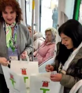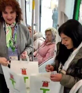 Por ello, a través de las redes sociales han querido compartir un vídeo durante la entrega de estos presentes a varios de los usuarios que han utilizado el Tranvía de la Bahía de Cádiz en alguna de las circulaciones que une Chiclana de la Frontera con San Fernando y Cádiz,