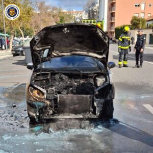 A su llegada, la Policía Local había descargando un extintor de polvo y los bomberos procedieron a finalizar la extinción. El fuego ha afectado a la zona del motor del turismo y afortunadamente no hay daños personales.
