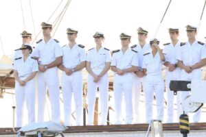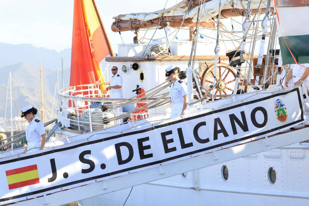 El Buque Escuela 'Juan Sebastián de Elcano' ha atracado este viernes, 17 de enero, en el puerto de Santa Cruz de Tenerife, donde la Princesa de Asturias y el resto de los guardiamarinas realizan la primera escala del crucero de instrucción desde su partida desde el puerto de Cádiz el pasado sábado 11 de enero.