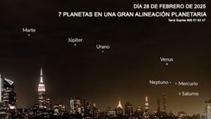 Inmediatamente después del atardecer, comenzando desde el horizonte occidental, siete planetas; Saturno, Mercurio, Venus, Júpiter, Marte, Urano y Neptuno, se alinearán formando un gran arco en el cielo vespertino (Que acaece durante la tarde y especialmente a su caída). Cinco de estos planetas (Saturno, Mercurio, Venus, Júpiter y Marte) serán visibles a simple vista. Necesitarás un telescopio o binoculares de alta potencia para ver a Neptuno y Urano. ¿Qué sucede cuando los planetas se alinean? Algunas fuentes de los medios afirman falsamente que las alineaciones planetarias causan tsunamis, terremotos y otros desastres globales. Esta tontería ha sido repetidamente desacreditada. En realidad, las alineaciones no afectan la gravedad o la vida humana, pero son eventos geniales para observar las estrellas ya que pueden pasar décadas hasta que vuelva a ver otras alineaciones. Sí que es curioso que el 21 de enero y el 28 de febrero los planetas hayan formado dos alineaciones en el cielo parecidas a una serpiente, justamente a la vez que el horóscopo chino hace su entrada en su año nuevo, siendo éste año (EL AÑO DE LA SERPIENTE). ¿Casualidad? Puede…El caso es que el universo nos va mostrando las maravillas que ocurren en él, para que podamos disfrutarlas y ser conscientes de la inmensidad que habita en él y en los astros, de la magia en la que vivimos diariamente sin apenas darnos cuenta.