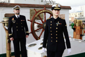 La Princesa se unió oficialmente a la dotación del “Juan Sebastián de Elcano” como guardiamarina de primero, comenzando así una etapa en su preparación naval.