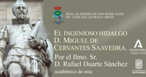 Poeta, articulista y académico de San Romualdo desde abril de 1992, Duarte Sánchez es un profundo conocedor de la obra cervantina y estudioso de su texto más reconocido, 'El ingenioso hidalgo Don Quijote de la Mancha», con cuyo título ha realizado un juego de palabras para poner nombre a su conferencia.