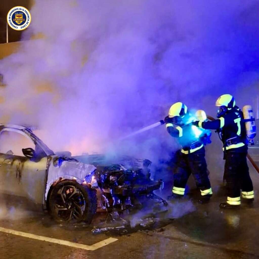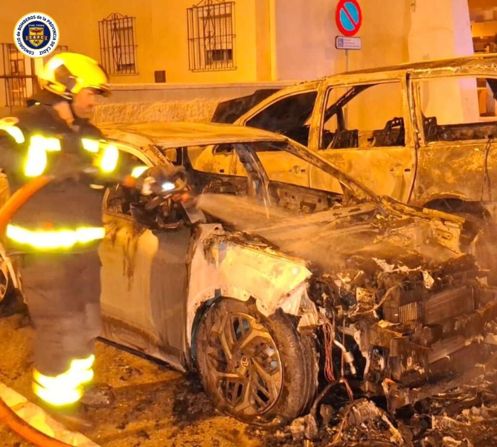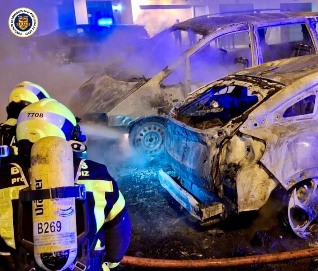 A su llegada, los cinco bomberos pudieron observar dos coches estacionados completamente en llamas y procedieron a la extinción del fuego.