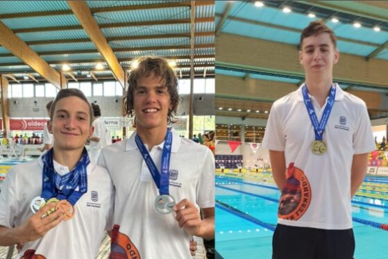 XIII Campeonato de España de Natación por Federación Territoriales Categorías Junior e Infantil. Yerai Amado Pérez (2010), Guillermo Espinosa Carrasco (2010) y David Rodríguez Piñero (2008) con la Selección de Andalucía de Natación.