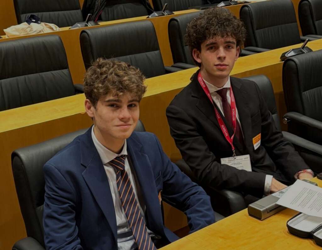 Manuel Domínguez Gento y Pedro Natera Peromingo, de 1° de Bachillerato, representan al colegio en la Sesión Nacional del Modelo Parlamento Europeo.