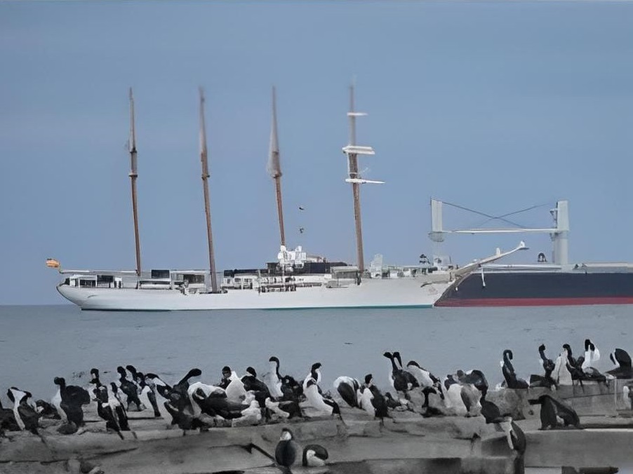El Juan Sebastián Elcano zarpa dejando atrás Punta Arenas y sus elegantes pingüinos