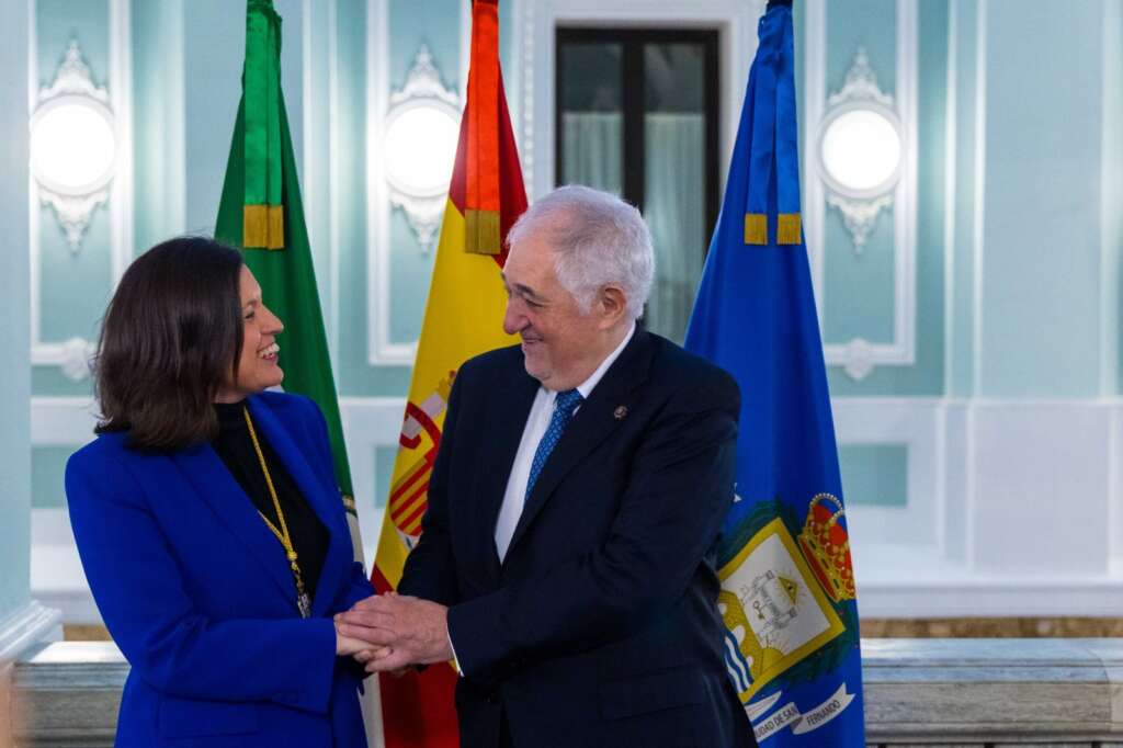 El presidente del TC Cándido Conde-Pumpido Tourón junto a la alcaldesa de San Fernando tras la firma en el libro de Honor