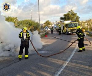 A la llegada de los servicios de emergencia, se observó que la Policía Local ya había intervenido utilizando un extintor de polvo. No obstante, los efectivos de bomberos procedieron a la completa extinción del incendio.