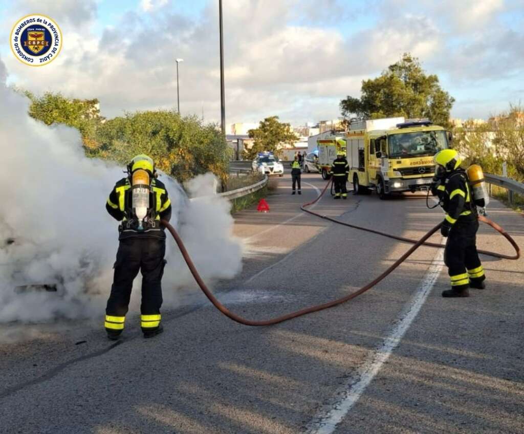 En la mañana de lunes 24 a las 08:05 horas se produjo un incendio de un vehículo en el diseminado de la Carretera Arsenal de la Carraca, Km. 2, que obligó a la salida del parque de San Fernando.