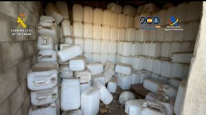 Del mismo modo, y tras recuperar la furgoneta de alquiler se intervinieron 198 petacas de 25 litros de gasolina cada una, siendo un total de 4.950 litros de gasolina.