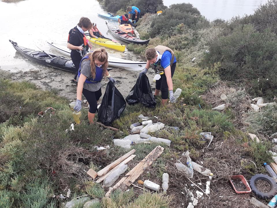 Voluntarios del Club Piragüismo San Fernando retiran 32 kilos de residuos del Caño de Sancti Petri