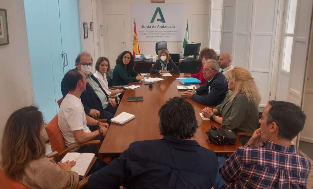 La delegada territorial de Desarrollo Educativo y Formación Profesional, Isabel Paredes, junto a la concejala de Educación del Ayuntamiento de San Fernando, Pepa Pacheco, han mantenido en la mañana de hoy una reunión con la comunidad educativa del CEIP San Ignacio, de San Fernando, en la que han estado presentes tanto el nuevo director del centro, Juan Antonio Espinosa, y representantes de la Asociación de Madres y Padres de Alumnos (AMPA). Paredes ha estado acompañada por representantes del Servicio de Inspección Educativa y Servicio de Planificación, en un encuentro, cuya finalidad responde a aunar esfuerzos y acercar posturas acerca de la situación actual del centro educativo.