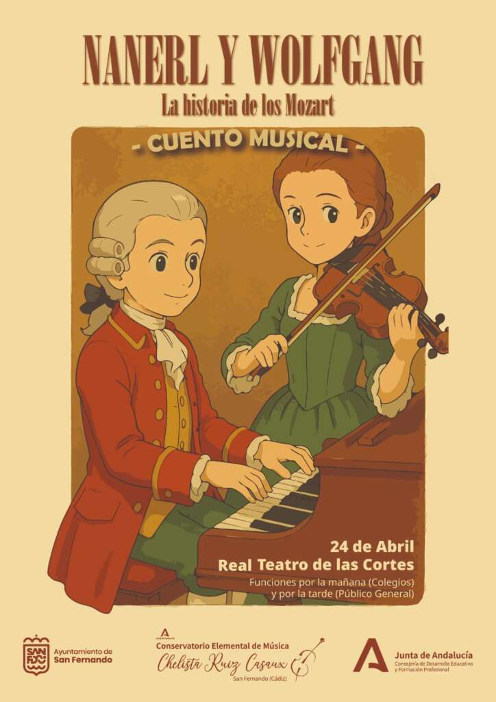 El próximo jueves 24 de abril a las 17:00 horas, el alumnado y profesorado del Conservatorio Elemental de Música Chelista Ruiz Casaux presentará en el Real Teatro de Las Cortes el cuento musical 'Nanerl y Wolfgang. La historia de los Mozart', una propuesta original que une educación, cultura e historia a través de la música.
