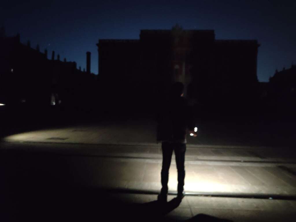 Vecinos caminan la calle Real utilizando la linterna de sus móviles tras el apagón - El Castillo de San Fernando