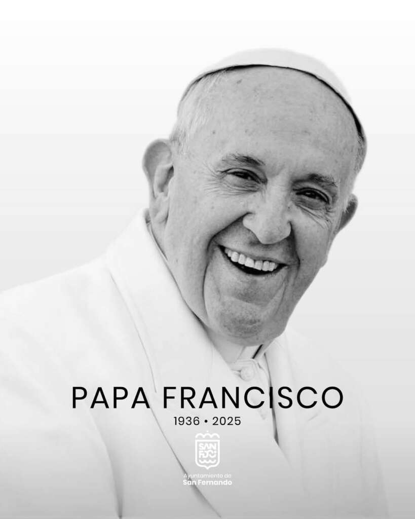 El Ayuntamiento de San Fernando, a través de la alcaldesa, Patricia Cavada, ha expresado su más sentido pésame por el fallecimiento del Papa Francisco, reconocido por su incansable labor en favor de la paz y la justicia social, dejando un profundo e incuestionable legado de compromiso y humanidad que trasciende fronteras religiosas y perdurará en la memoria de todos.