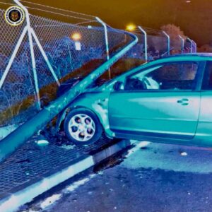 El siniestro ha implicado a un único vehículo, que ha colisionado violentamente contra una farola, arrancándola de su base. A la llegada de los efectivos, el conductor ya había sido trasladado por los Servicios Sanitarios.