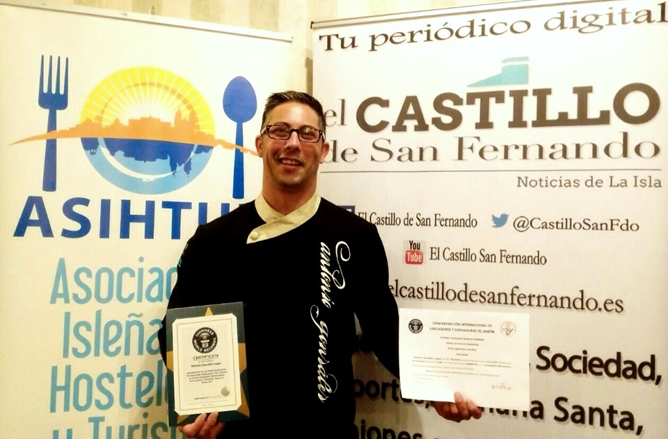El maestro cortador isleño Antonio González, quien ha sido portada en este medio en muchas ocasiones por su profesionalidad y solidaridad, entrenará en Bahía Sur este sábado 24 de mayo, de 10:00 a 22:00 horas, para intentar batir el Récord Guiness mundial de más de 72 horas seguidas cortando jamón, previsto para el mes de noviembre de este mismo año.