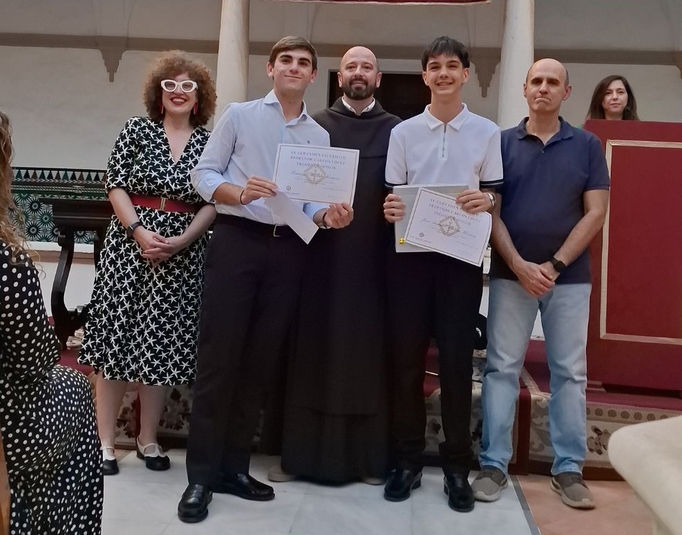 Los miembros del jurado decidieron otorgar el premio de honor a los alumnos de 4º de ESO del colegio Liceo, José Antonio Aguilar Herrera y Francisco Moreno Romero por su originalidad, creatividad y valor científico en el trabajo realizado ‘¿Beber del vaso o de la lata?’.