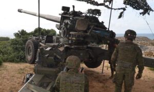 Efectivo del Racta 4 junto a una pieza de artillería desplegada en la Bahía de Palma - Ejercito de Tierra
